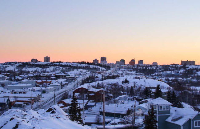 Là thành phố đông dân nhất tại vùng tây Bắc Canada với 19.234 người, thành phố Yellowknife nằm ở phía bắc của hồ Slave lớn, đồng thời cũng nằm giữa Yukon, Nunavut và British Columbia. Thành phố Yellowknife tuy có nhiệt độ cao hơn 2 thành phố phía trên nhưng vẫn đứng top những thành phố được mệnh danh lạnh lẽo nhất Canada. Thời điểm lạnh nhất tại đây nhiệt độ có thể hạ thấp tới âm 40 độ C.
