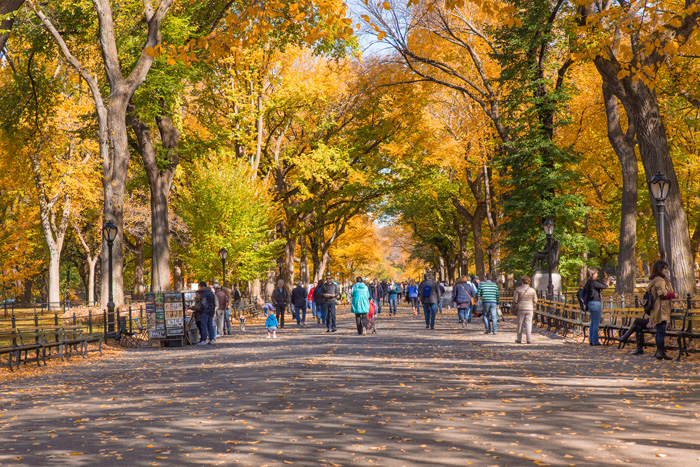 Điều đặc biệt và lãng mạn nhất mà tôi nhận thấy không chỉ ở Công viên trung tâm New York mà ở bất cứ công viên nào tại Mỹ, đó là vào mùa Thu, lá cây rụng xuống dày đặc dưới chân từng hàng ghế. Có thể là chiếc ghế được thiết kế dạng uốn cong vòng viền theo kiểu kiến trúc cổ điển, cũng có những chiếc ghế đá nữa, khi chúng được đặt lên tấm thảm lá mùa thu, tạo nên một khung cảnh hết sức thơ mộng và lãng mạn như trong các bộ phim truyền hình Hàn Quốc.