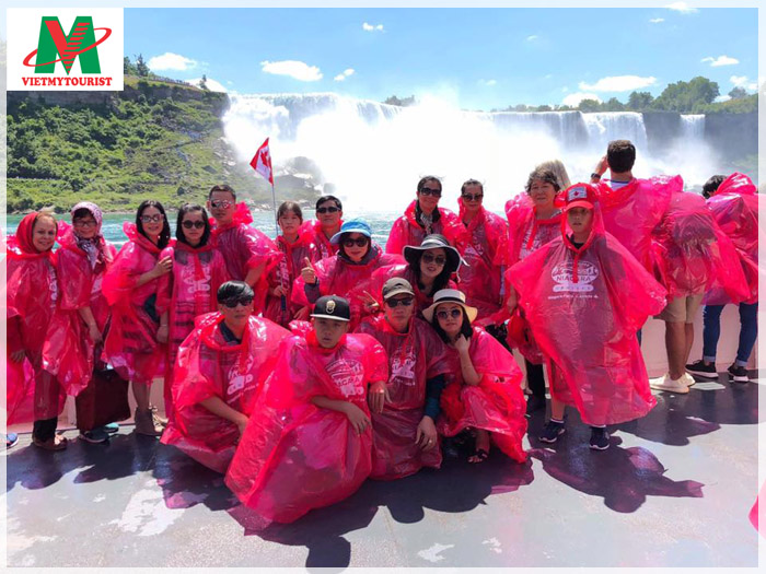 Đoàn khách chụp hình bên cạnh thác Niagara
