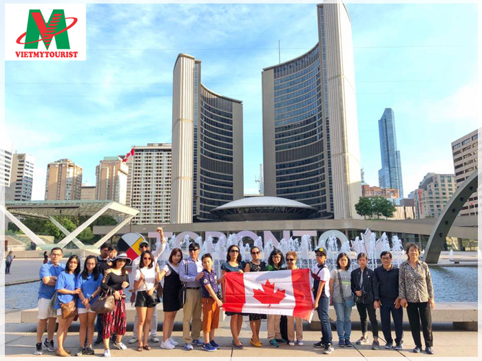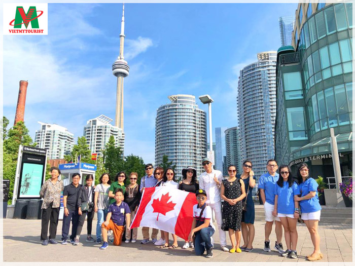 Đoàn khách Vietmytourist checkin tại Toronto, phía sau là tháp CN cao nhất thế giới