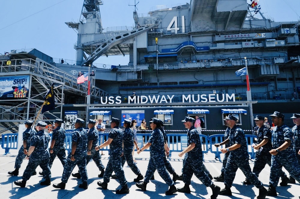 - Tàu sân bay USS Midway– có hải trình phục vụ 47 năm , là mẫu hạm phục vụ lâu nhất của quân đội Mỹ trong thế kỷ 20 , từ cuối Chiến tranh Thế giới thứ II ( WWII ) cho đến cuộc chiến giải phóng Kuwait 1991 , trước khi ” về hưu” vào năm 1992 . Trong đó, đáng nhớ nhất là USS Midway đã từng tham gia 2 cuộc chiến : chiến tranh Vietnam và cuộc chiến vùng vịnh (Bão sa mạc) 1991.