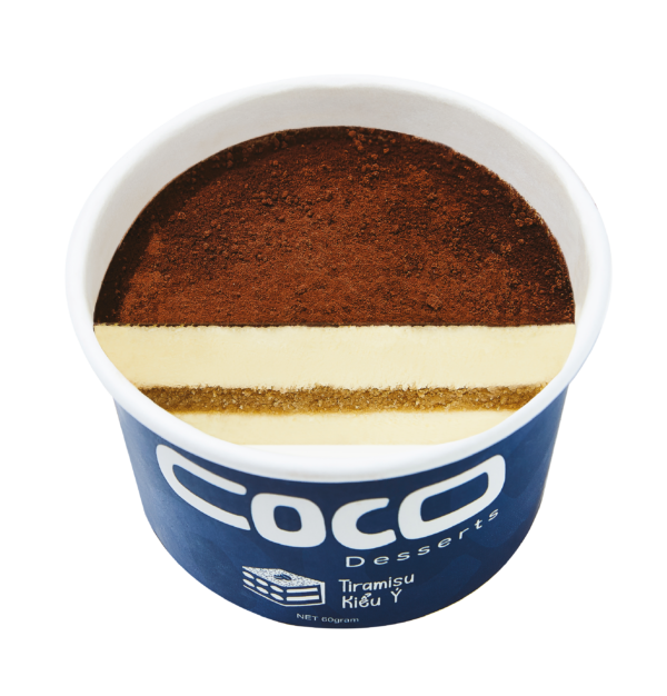 Bánh cà phê hoà quyện cùng lớp kem mascarpone được phủ bột cacao nguyên chất.