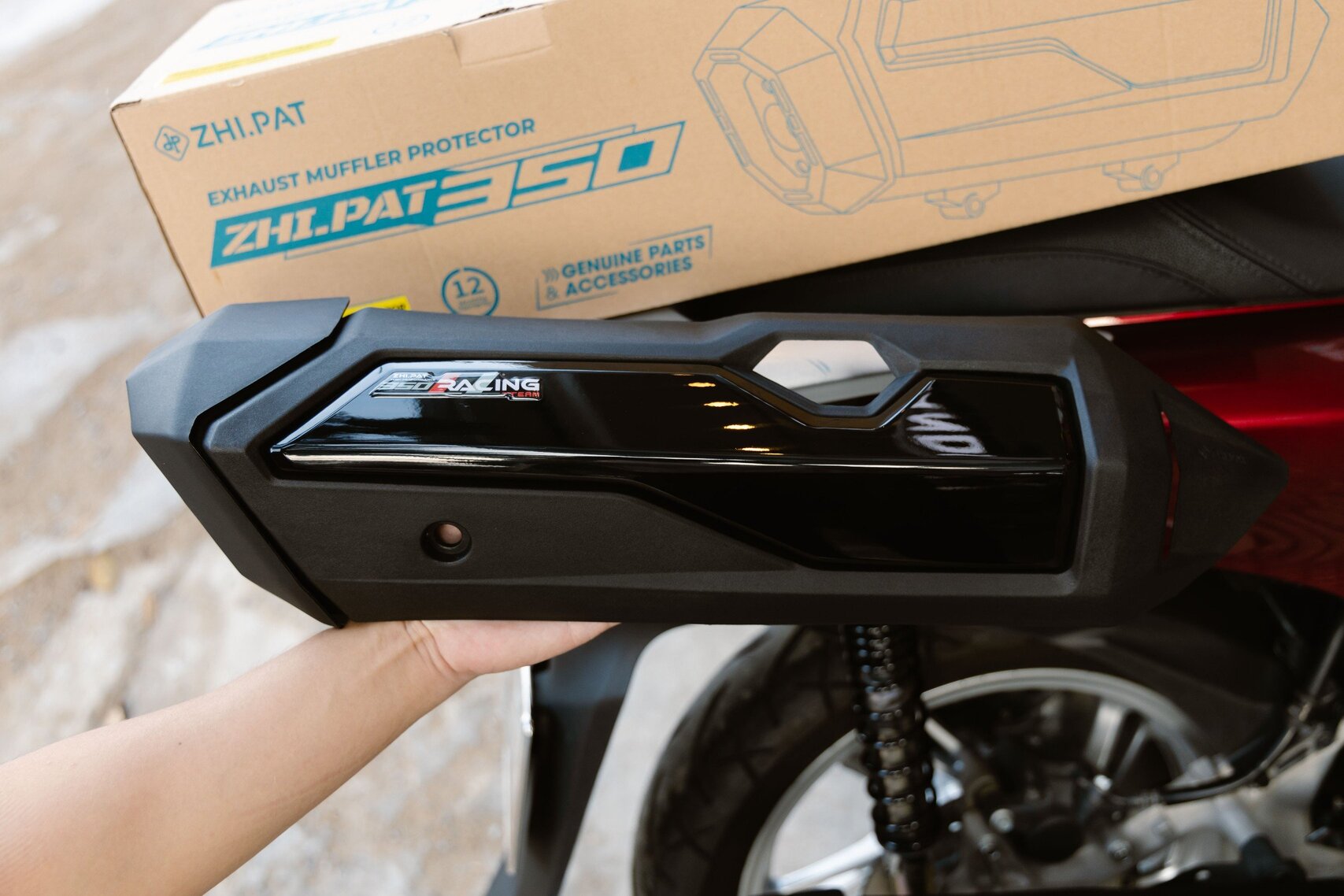 Ốp pô ZHI.PAT 350i mang đến phong cách thể thao mạnh mẽ cho Honda SH 350i, Forza 350i và SH 125i/150i/160i (2020-2023). Chất liệu nhựa kỹ thuật cao cấp chịu nhiệt tốt, giúp cách nhiệt phần ống xả, gia tăng độ cứng cáp và đẳng cấp cho xe phân khối lớn. Lắp đặt dễ dàng chuẩn zin sản phẩm là lựa chọn hoàn hảo cho những ai yêu thích sự mạnh mẽ và sang trọng.